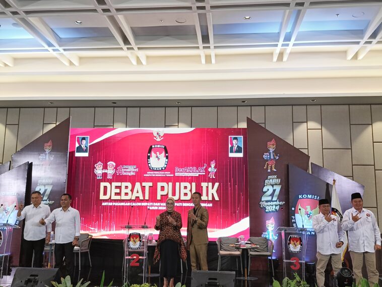 Debat publik dengan mengambil tema Aksesibilitas, Peningkatan Kesejahteraan Masyarakat Melalui Pelayanan Publik yang Responsif, diikuti 3 pasangan calon yaitu Rachmat Riyanto-Tarmizi nomor urut 1, Evi Susanti-Rico Zaryan nomor urut 2, dan Sri Budiman-Septi Peryadi nomor urut 3.